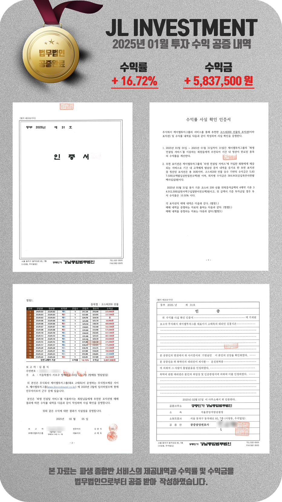 제이엘투자그룹, 2025년 01월 파생반 투자 수익 공증 내역