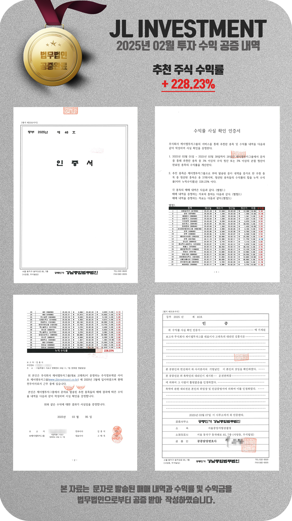 제이엘투자그룹, 2025년 02월 VIP종합반 투자 수익 공증 내역