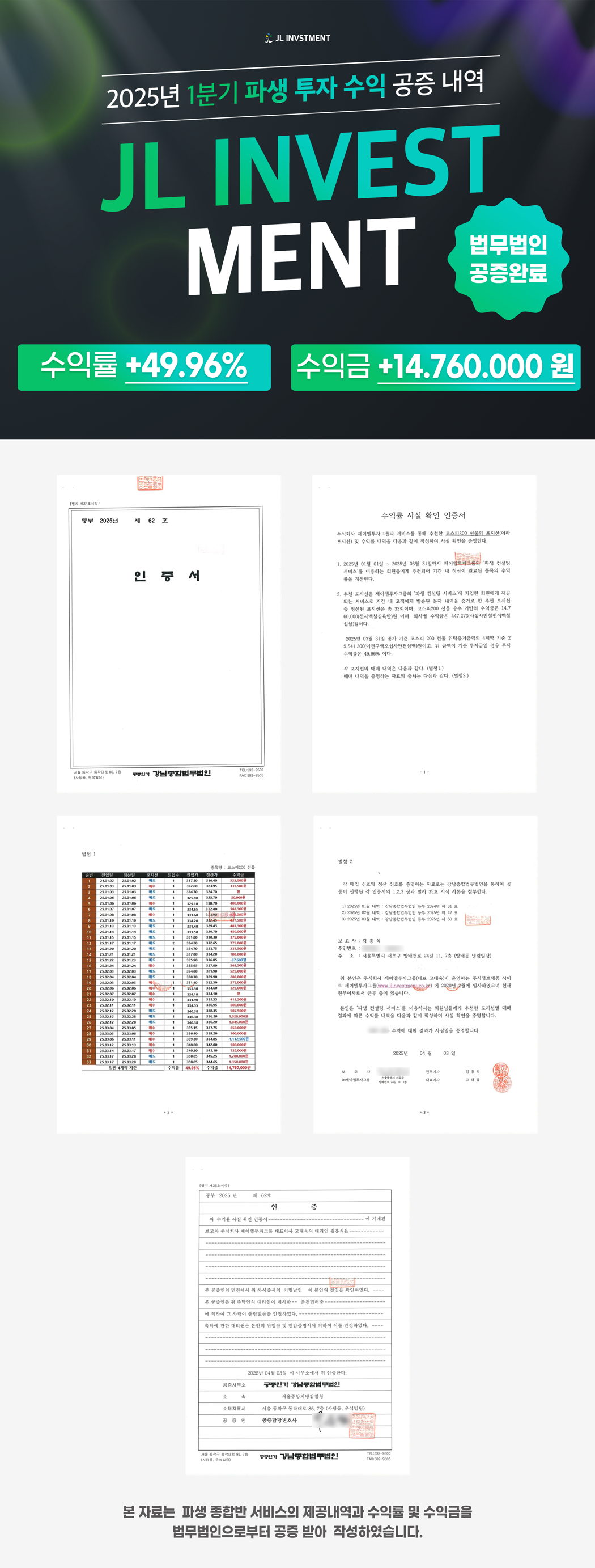 제이엘투자그룹, 2025년 1분기 파생반 투자수익 공증