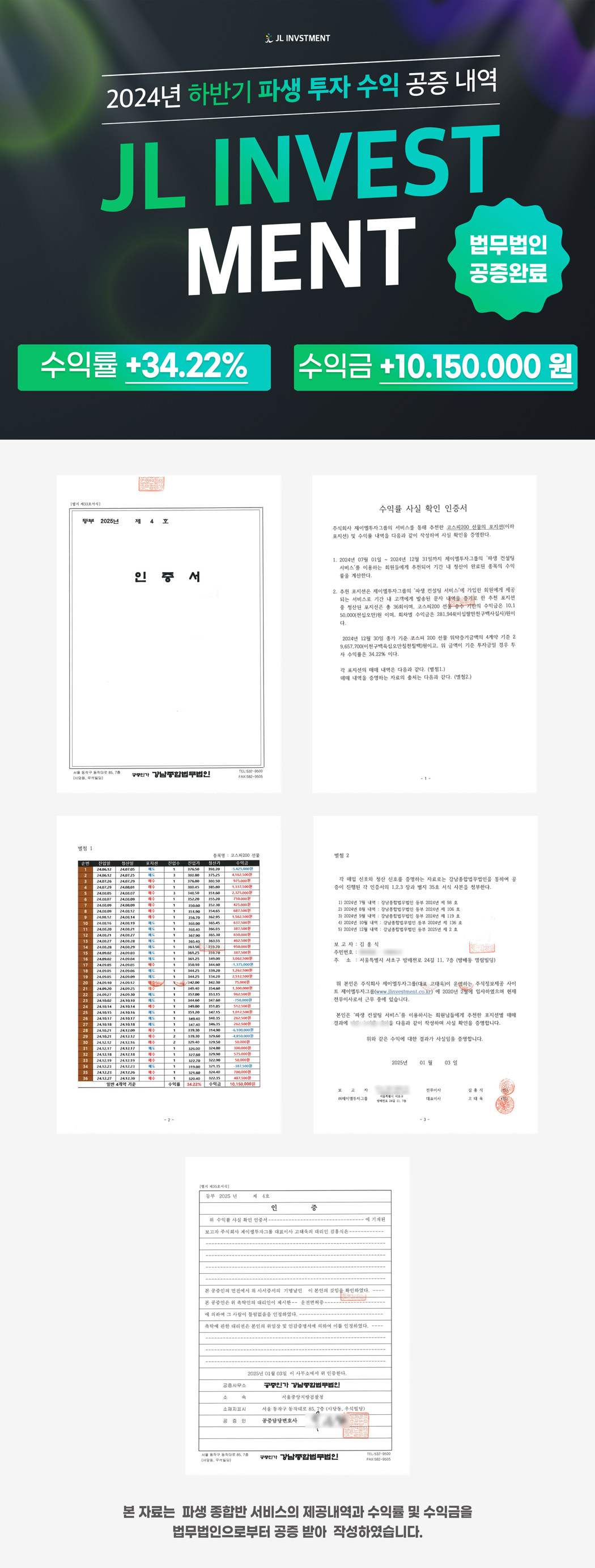 제이엘투자그룹, 2024년 하반기 파생반 투자수익 공증