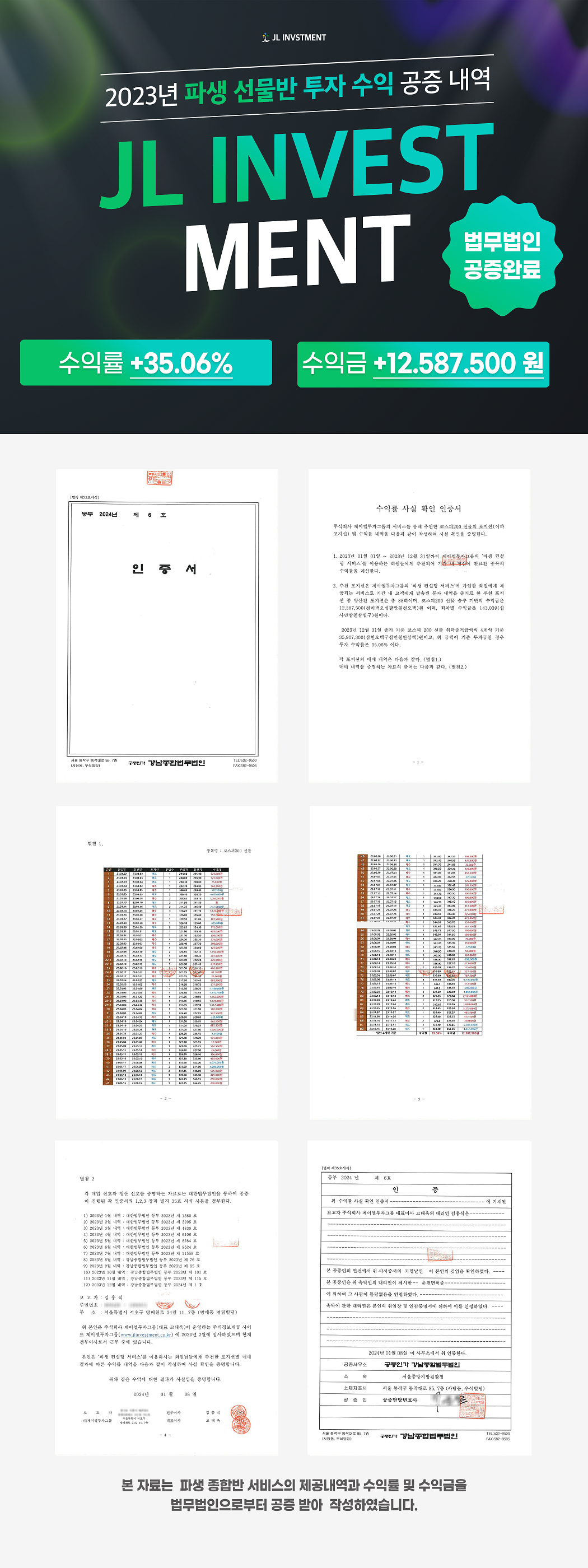 제이엘투자그룹, 2023년도 파생반 투자수익 공증