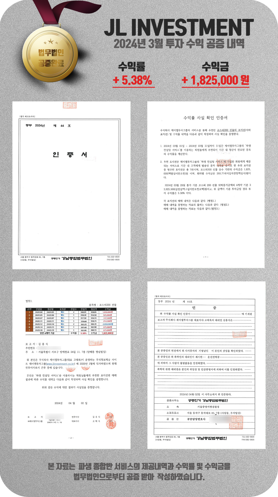 제이엘투자그룹, 2024년 03월 파생반 투자 수익 공증 내역