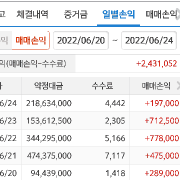 이번주 수익(20일~24일)