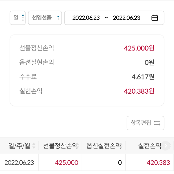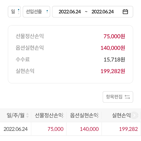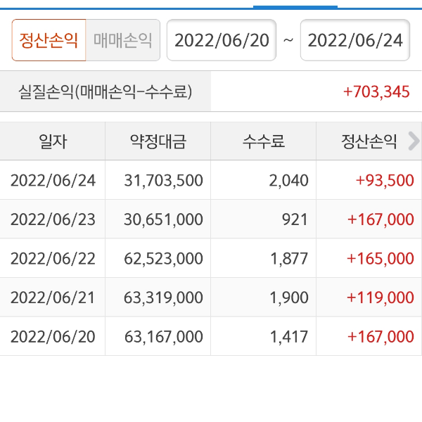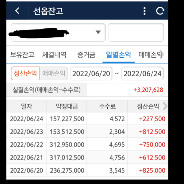 (선물)이번주 수익(20일~24일)