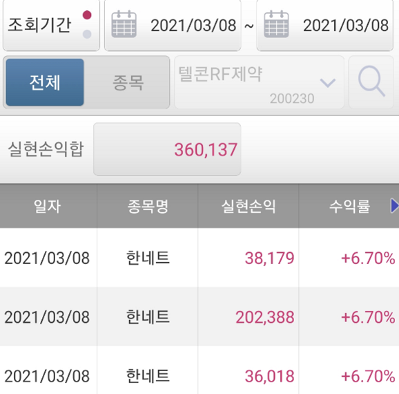 한네트 수익인증