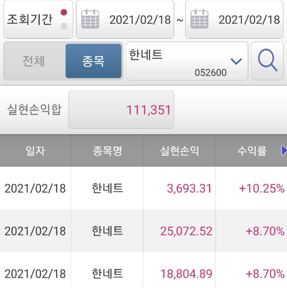 한네트 수익인증