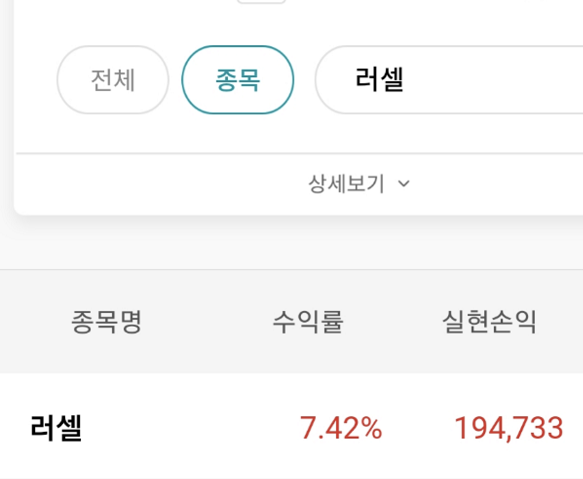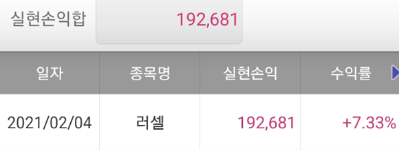 이방 입장후 첫 수익(러셀) 인증 올립니다.^^