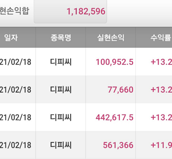 디피씨 600만원 수익달성